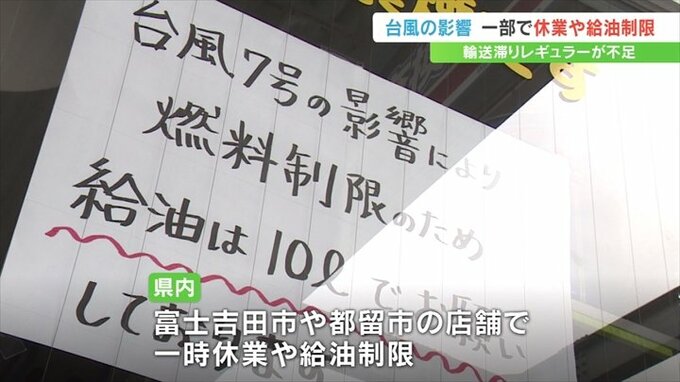 また台風の影響で輸送が滞り、一部の店舗で休業や給油制限が出ています。
