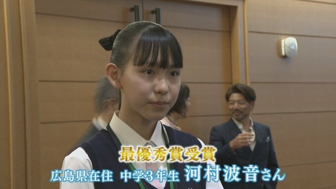 最優秀賞に輝いた1人、広島県に住む中学3年生、河村波音さんです。
