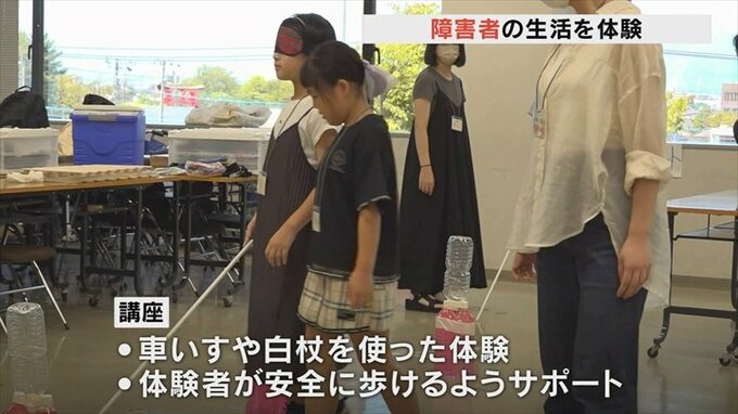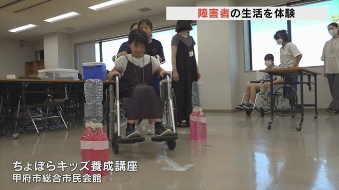 小学生が障害者の生活を体験し、サポートについて学ぶ講座が甲府市で開かれました。