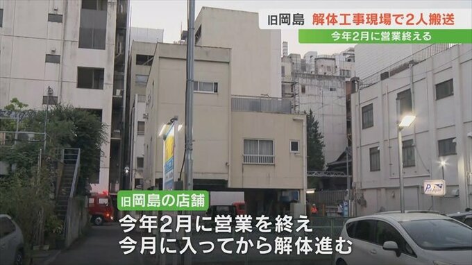 甲府市の旧岡島の解体工事現場で男性2人が体調不良を訴え病院に運ばれました。