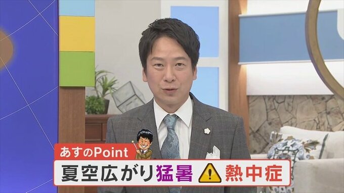 これによって晴れる時間が長くなりますから気温が上がり、予想最高気温は35℃。ですから、猛烈な暑さとなりますので熱中症は要注意です。
