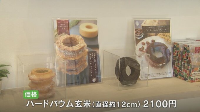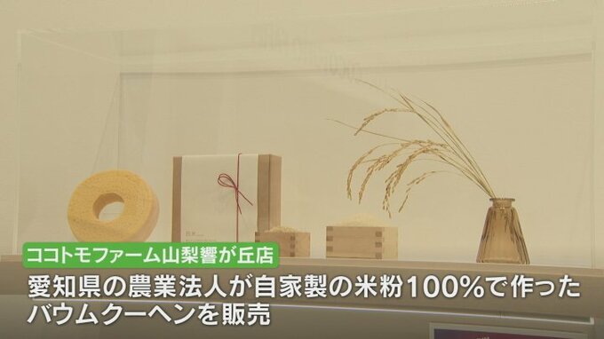 店では、愛知県の農業法人が小麦粉を使わず、自家製の米粉100%で作ったバウムクーヘンを販売します。