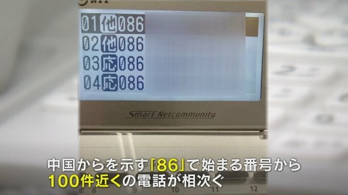2日土曜日の営業開始前から、中国からの電話であることを示す「86」で始まる番号から100件近くの電話が相次ぎました。