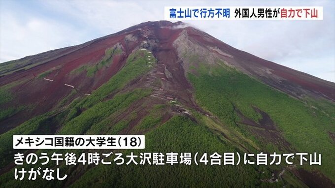 2人はおととい3日午後3時半過ぎから吉田口登山道から外れたルートを登山していて道に迷い、このうちメキシコ国籍の18歳の大学生は4日午後4時ごろ、4合目の大沢駐車場に自力で下山しけがはありませんでした。