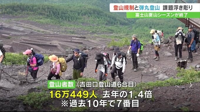 富士吉田市によりますと期間中、山梨県側の6合目を通過した人は16万449人で去年の1.4倍に上りました。