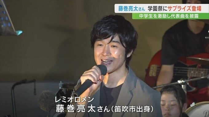 山梨県笛吹市出身のミュージシャン、レミオロメンの藤巻亮太さんが山中湖村の中学校の学園祭に出演。