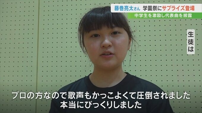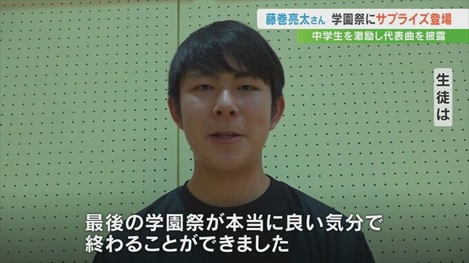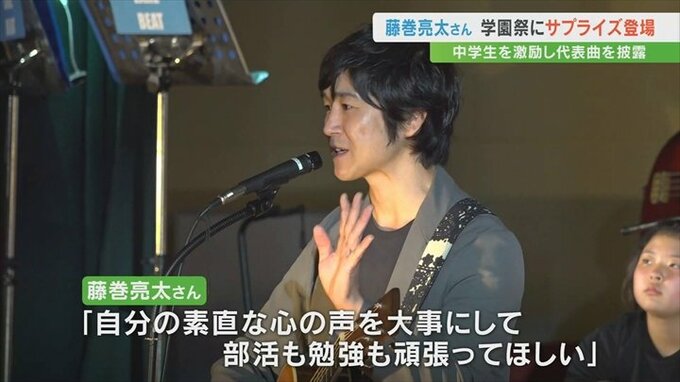 藤巻さんは「自分の素直な心の声を大事にして部活も勉強も頑張ってほしい」と生徒たちを激励し、代表曲の「3月9日」を弾き語りで披露しました。