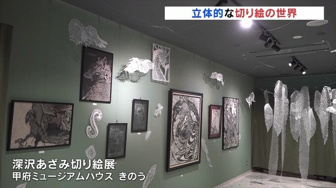 飛び出すような切り絵の展示会が甲府市の美術館で開かれています。