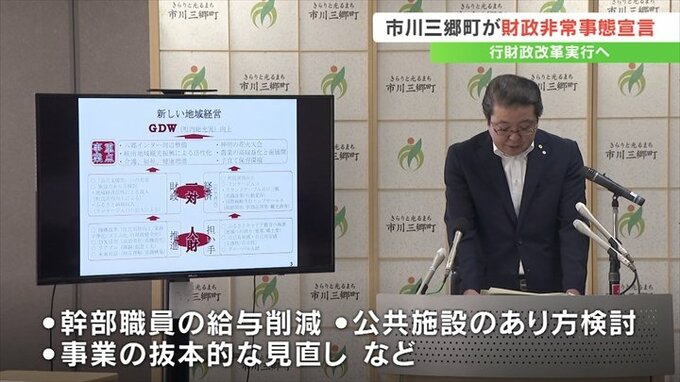 山梨県市川三郷町は町の財政が危機的状況にあるとして財政非常事態宣言を出しました。