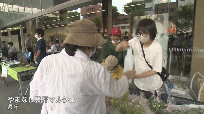 障害のある人が作った野菜や加工食品を格安で販売する、農福マルシェが山梨県庁で開かれました。