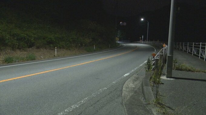 現場は見通しの良い片側一車線のカーブで、警察が事故原因を調べています。