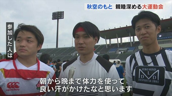 秋空のもと参加者は笑顔で親睦を深めていました。