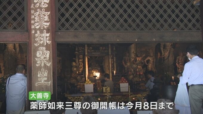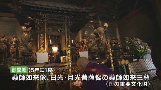 甲州市の大善寺で5年に一度の御開帳が行われ、重要文化財の薬師如来三尊が一般に公開されています。