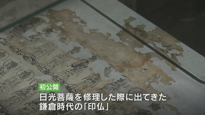 また今回の御開帳では、2010年に日光菩薩像を解体修理した際に像の中から出てきた鎌倉時代の「印仏」が初めて公開されています。