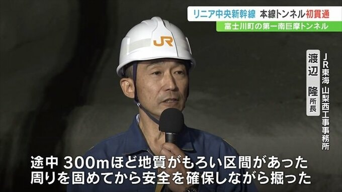 きょう13日に貫通したのはリニア中央新幹線のルートのうち、富士川町で工事が進められている第一南巨摩トンネルです。