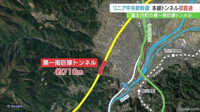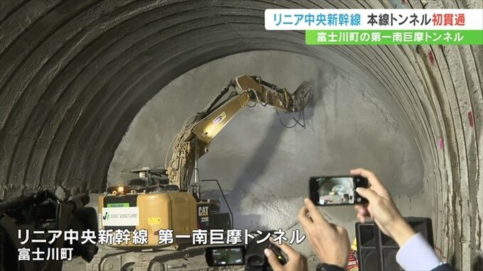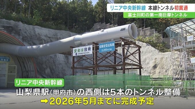 県内では甲府市大津町に置かれる「山梨県駅」の西側は、今回貫通した第一南巨摩トンネルを含めて5本のトンネルを整備する計画で、2026年5月までに完成する予定です。