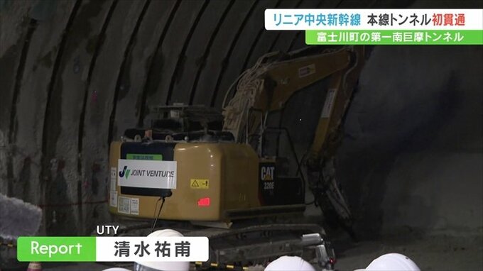 まもなくあちらの重機を使ってトンネルが貫通します。リニア開業に向けて山梨県内では工事が着々と進んでいます。