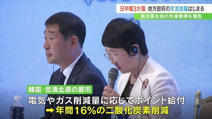 このうち韓国は、忠清北道の都市で電気やガスエネルギーの削減量に応じて、現金と同じように使えるポイントを給付する制度を設け、年間16%の二酸化炭素を削減した実績などを報告しました。