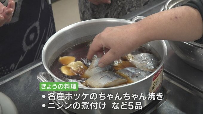 船泊名産のホッケを使った「ちゃんちゃん焼き」や「ニシンの煮付け」など5品を伝授しました。