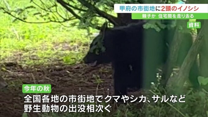 この秋は全国各地の市街地でクマやシカ、サルなど野生動物の出没が相次いでいて、甲府市はイノシシを見かけた場合は刺激せず、すぐに市や警察に連絡するよう呼び掛けています。