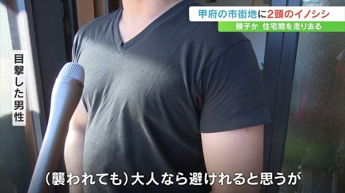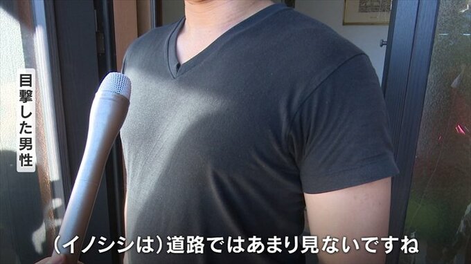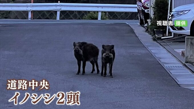 イノシシは親子とみられ、男性は様子を伺いながら近づくと逃げ出し、2軒の住宅の間の通路を走り去ったということです。