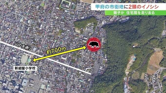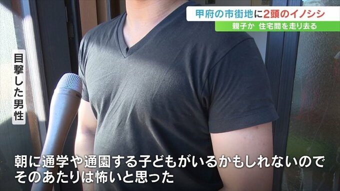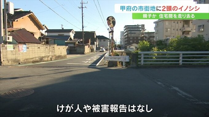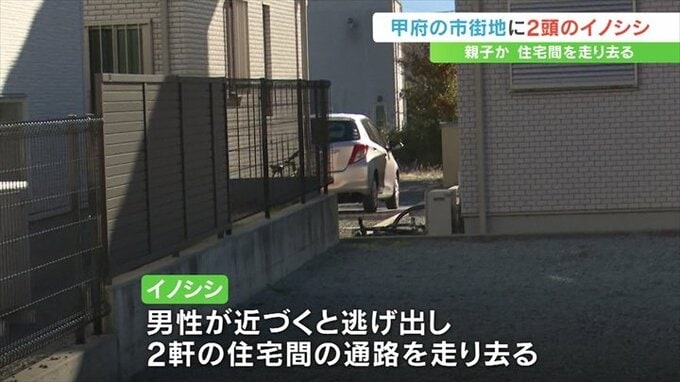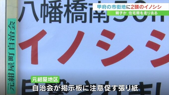 30日朝に甲府市の住宅街で2頭のイノシシが目撃され、自治会で注意を呼び掛けています。
