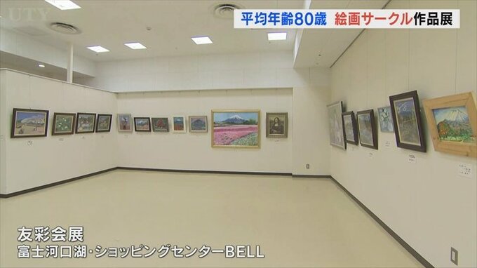 富士河口湖町のショッピングセンターで開かれている、絵画サークル「友彩会」の作品展です。