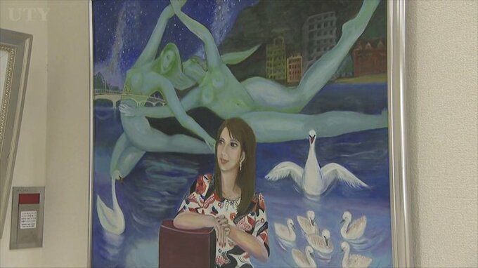 湖面に映る雄大な富士山や、幻想的な雰囲気で描かれた美しい女性。