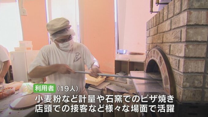 現在の利用者は19人で、緻密さが求められる小麦粉などの計量や石窯でのピザ焼き作業、店頭での接客など様々な場面で活躍しています。