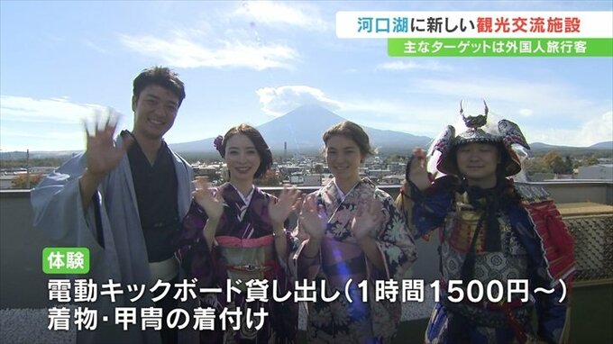 また、電動キックボードのレンタルで河口湖を気軽に周遊できるほか、着物や甲冑の着付け体験も用意されています。