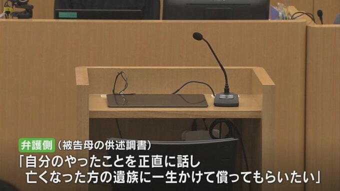 一方、13日の裁判で弁護側は被告の母親の「自分のやったことを正直に話し、亡くなった方の遺族に一生かけて償ってもらいたい」などとする供述調書を読み上げました。