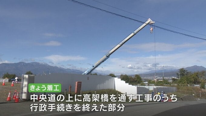 きょう13日に始まったのは中央道の上に高架橋を通す工事のうち、行政手続きを終えた部分です。