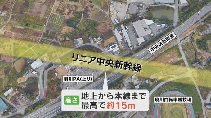 JR東海によりますと今回対象となる工事の区間は約330mで、中央道・上り線の境川パーキングエリア付近の上をリニアが通過します。