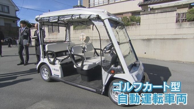 こちらが実証実験に使われるゴルフカート型の自動運転車両。