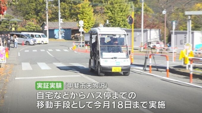 実証実験は勾配のある住宅地の甲斐市天狗沢の公道で、自宅などからバス停までの移動手段として11月18日までおこなわれます。