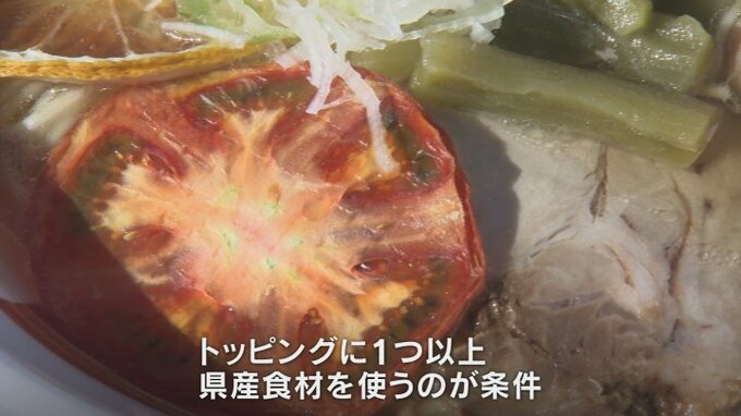 トッピングに1つ以上県産食材を使うのが条件で、20日は中央市産のドライトマトが添えられました。