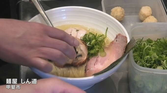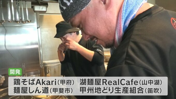 開発したのは県内3つのラーメン店と甲州地どり生産組合で、きょう23日は甲斐市の「麺屋しん道」に店主たちが集まり、イベントで出したラーメンを販売しました。