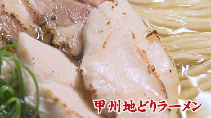 大勢の客が一心不乱にすすっているのは、スープのだしや、トッピングに甲州地どりをふんだんに使い旨味を引き出した、「甲州地どりラーメン」です。