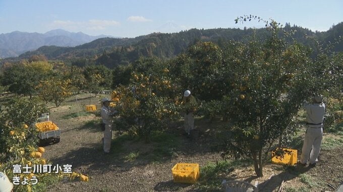 富士川特産のユズの収穫作業が今、ピークを迎えています。