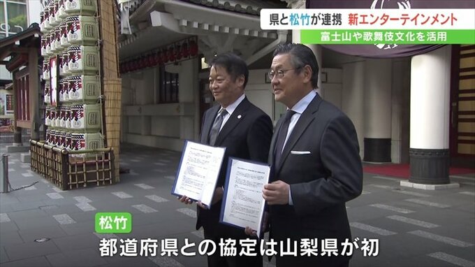 山梨県は映画や歌舞伎の舞台を手掛ける「松竹」と協定を結びました。