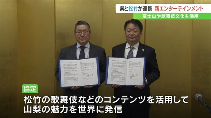 協定では松竹が持つ歌舞伎などのコンテンツを活用して山梨の魅力を世界に発信し、地域経済の活性化につなげます。