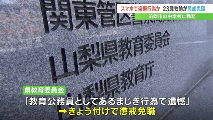 買い物カートにスマートフォンをセットして盗撮行為を行ったとして県教育委員会は笛吹市の公立中学校に勤める23歳の教諭を懲戒免職処分としました。
