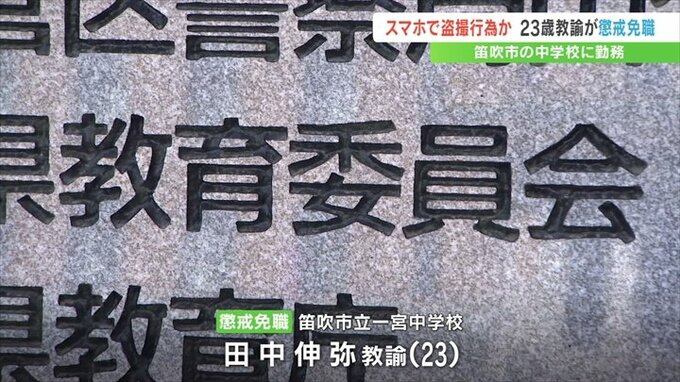 懲戒免職となったのは笛吹市立一宮中学校の田中伸弥教諭23歳です。