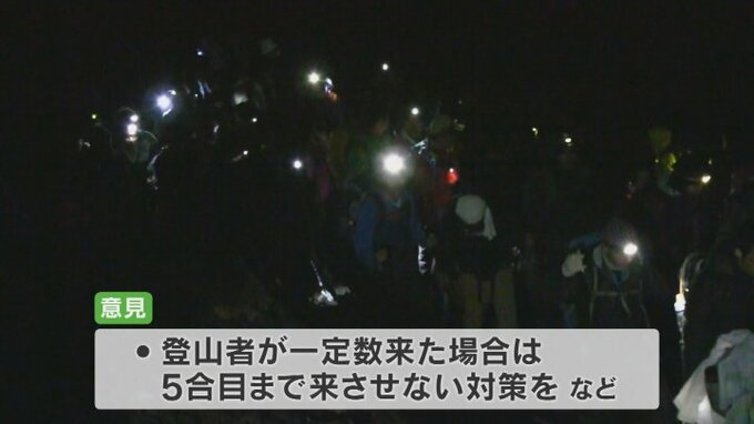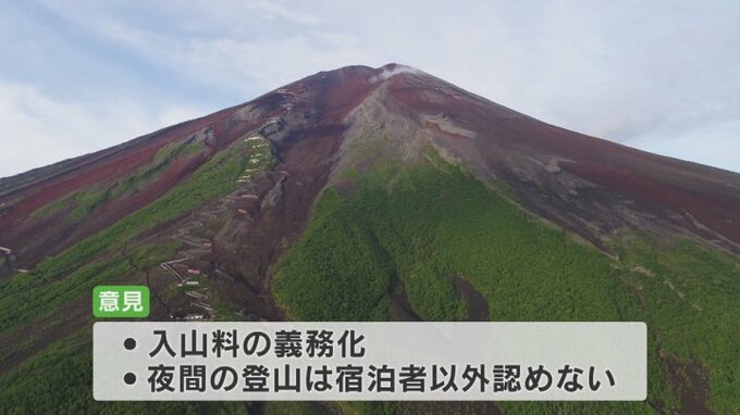 富士吉田市や山小屋関係者などからは、入山料の義務化や夜間の登山は宿泊者以外認めないこと、それに登山者が一定数来た場合は5合目まで来させない対策が必要といった意見があり、法整備の検討を求めました。