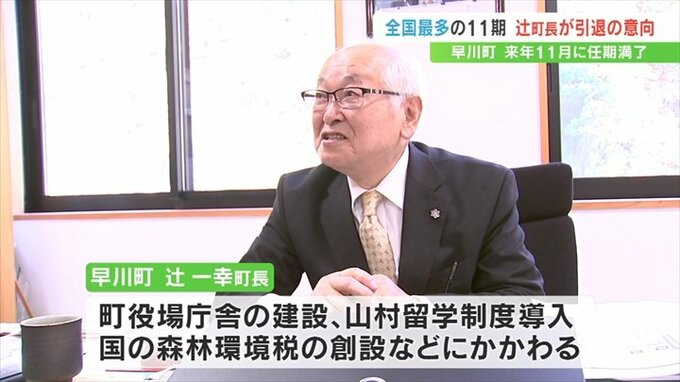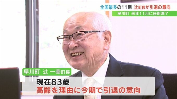 全国最多の11期目を務めている早川町の辻一幸町長が来年11月の任期満了で引退する意向であることがわかりました。