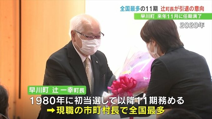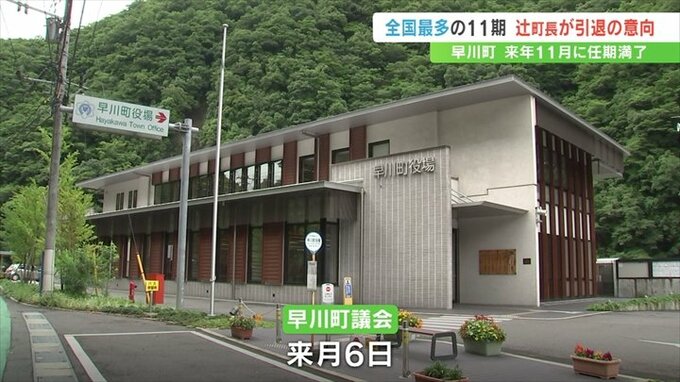 早川町の辻町長は1980年に初当選して以降、町長を11期務めていて、これは現職の市町村長のうち全国最多です。