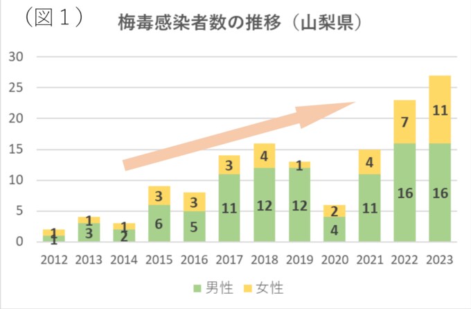 「梅毒」の感染者数が過去最多 早めの検査など呼び掛け 山梨県