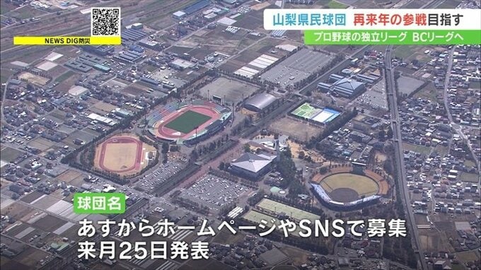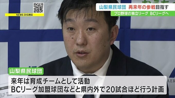 プロ野球の独立リーグBCリーグ参入を目指す山梨県民球団が会見し、再来年からの参戦を目指すと発表しました。