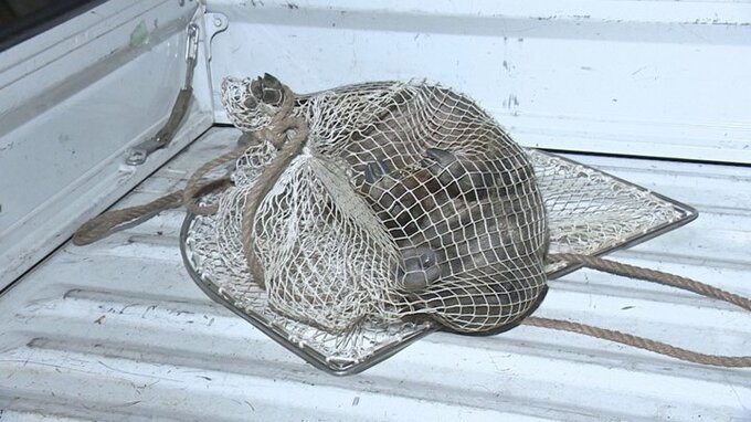 捕獲されたイノシシ