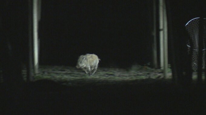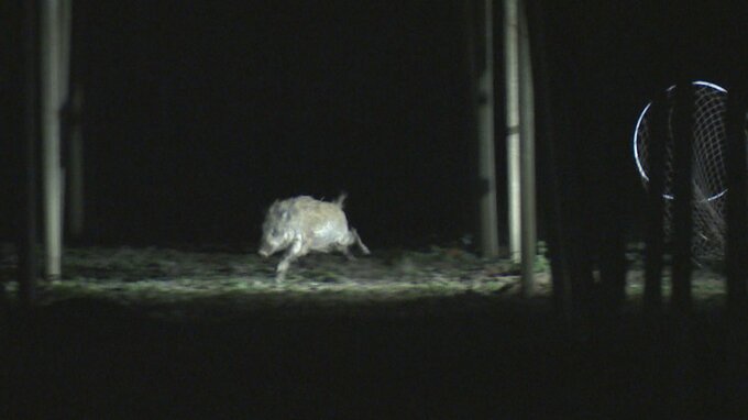 逃げるイノシシ 山梨・笛吹市 30日